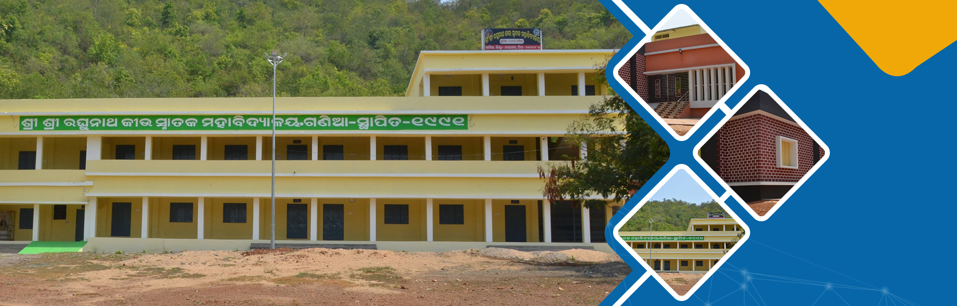 As a premier higher educational Institution at Gania block head quarter under Nayagarh district, Odisha is named after Shree Shree Raghunath jew, the sole idol of the locality. It is located in a scenic amphitheatre surrounded by hills, dense forest and the Mahanadi. It is situated at a distance of 50 kms from Nayagarh and 100kms from Bhubaneswar.